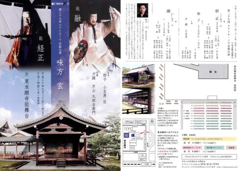 まず味方玄師のサイトにアップされていた公演チラシが以下。 チラシにもあるけれど、当日の演者は以下。 前シテ 尉 味方玄 後シテ 源融の霊 味方玄 ワキ 旅僧 宝生欣哉 アイ 六条辺の者 小笠原匡 笛 杉信太朗 小鼓 船戸昭弘 大鼓 河村大 太鼓 前川光範 後見 …